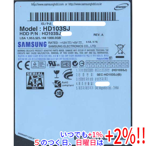 内蔵型ハードディスクドライブ Samsung HD103SJ 1TB HDD SAMSUNG HD103SJ [1TB] 内蔵型ハードディスクドライブ - 最安値